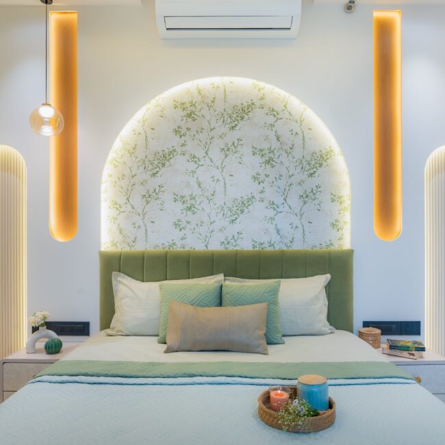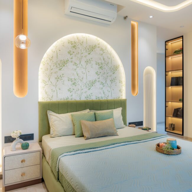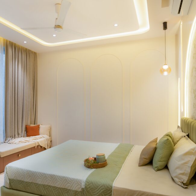 This home perfectly balances pastel charm, warm neutrals, bold accents, and thoughtful detailing. Whether it’s the artistic mirrors, CNC work, or curated lighting, every design element adds depth and personality to the space.