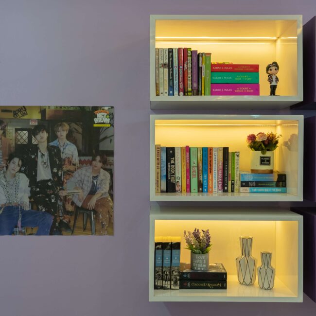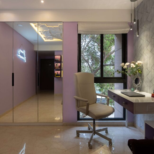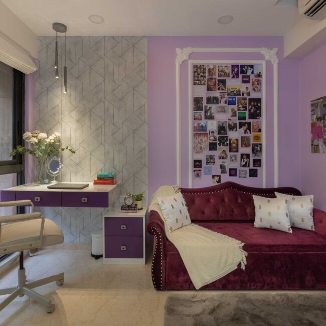 A small workstation completes the design, making it as purposeful as it is beautiful. Together, these touches transform the room into a space that’s creative, expressive, and full of personality.