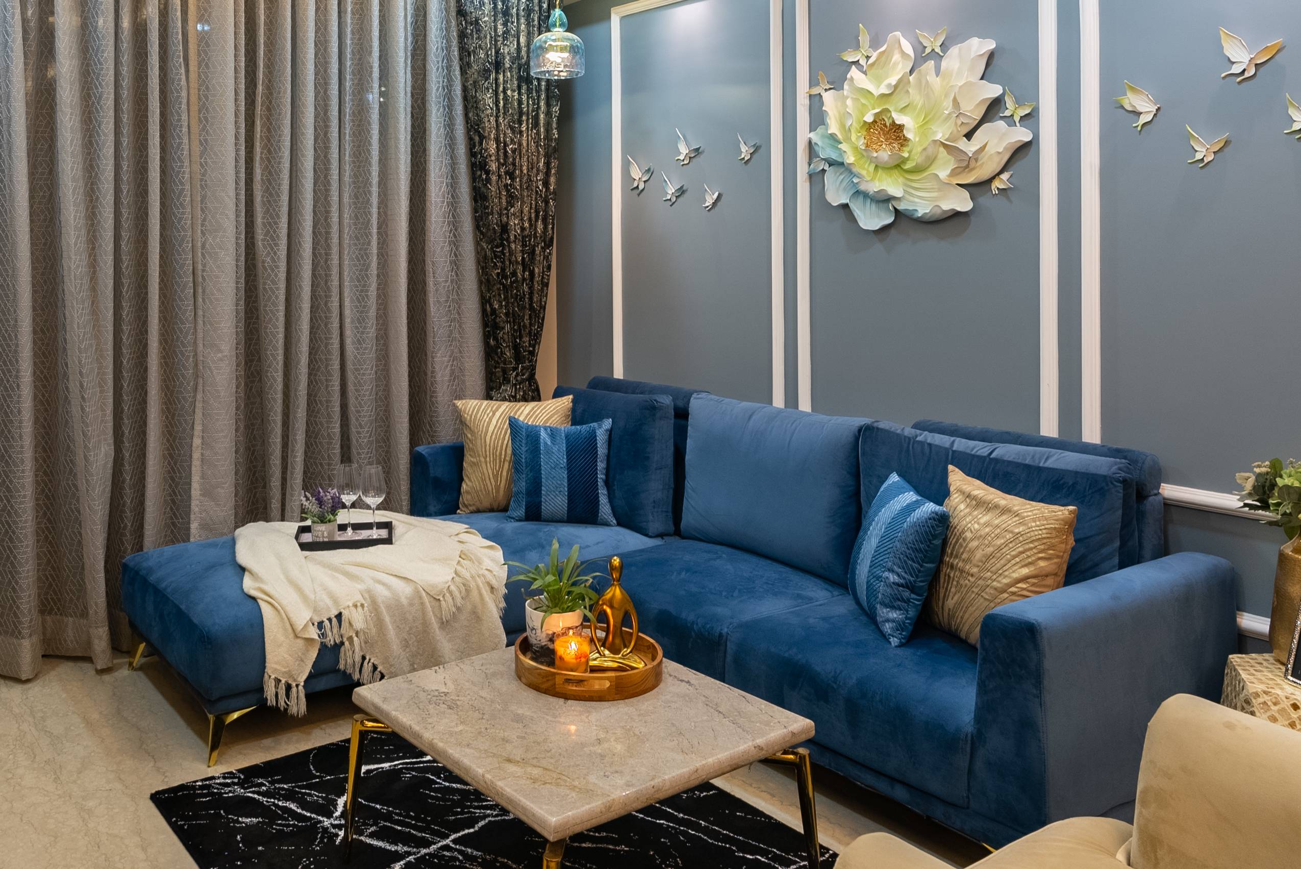 A Living Room that Glows with Gold and Blue
